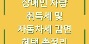 장애인을 위한 사회적 지원 정책은 점점 확대되고 있습니다. 특히 차량 구매와 관련된 세금 감면 혜택은 장애인 가구에 큰 도움이 되고 있습니다. 본 글에서는 장애인 차량 취득세 및 자동차세 감면 혜택에 …