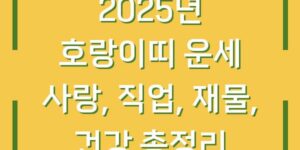 2025년은 호랑이띠 여러분에게 많은 변화와 기회가 기다리고 있는 해입니다. 이 글에서는 호랑이띠의 2025년 운세를 사랑, 직업, 재물, 건강의 네 가지 주요 분야로 나누어 자세히 살펴보도록 하겠습니다. 각 섹션에서는 이들 분야에서 …