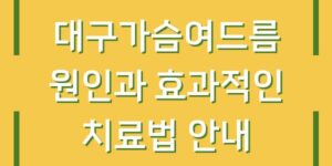 여드름은 많은 사람들이 겪는 피부 문제 중 하나로, 특히 대구 지역에서도 많은 분들이 여드름으로 인한 스트레스를 느끼고 있습니다. 여드름은 단순한 피부 트러블로 여겨지기도 하지만, 그 원인과 치료 방법을 알아보는 것이 …