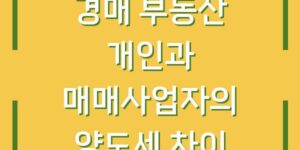 부동산 경매는 많은 투자자들에게 매력적인 기회를 제공합니다. 그러나 경매 부동산을 매입하거나 매도할 때, 개인과 매매사업자 간의 양도세 차이에 대한 이해는 매우 중요합니다. 이 글에서는 양도세의 기본 개념부터 시작하여, 개인과 매매사업자의 …
