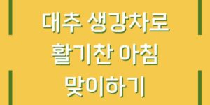 아침은 하루의 시작을 알리는 중요한 시간입니다. 건강하고 활기찬 아침을 맞이하기 위해 많은 분들이 다양한 방법을 시도하고 있습니다. 그중에서도 대추 생강차는 그 효능과 맛 덕분에 많은 사랑을 받고 있습니다. 이번 글에서는 …