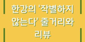 작품 소개 한강 작가의 최신 소설인 <작별하지 않는다>는 제주 4.3 사건이라는 무겁고 아픈 역사적 배경을 바탕으로, 그 속에서 인물들이 겪는 고통과 사랑을 다루고 있습니다. 한강은 한국 문학에서 독특한 위치를 차지하고 …
