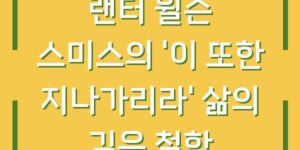 생의 여정과 고난, 그리고 위로 랜터 윌슨 스미스의 시 ‘이 또한 지나가리라’는 인생의 고난과 기쁨이라는 양극단의 감정을 아우르며, 우리에게 깊은 통찰을 제공합니다. 이 시는 인간의 삶이 고통과 기쁨, 희망과 절망 …