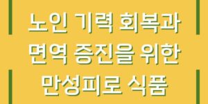노인들은 나이가 들면서 자연스럽게 기력과 면역력이 저하되는 경향이 있습니다. 이러한 변화는 일상적인 활동에 큰 영향을 미치며, 이를 보완하기 위해서는 적절한 영양 섭취가 필수적입니다. 만성피로를 겪는 노인들을 위해, 기력 회복과 면역 …