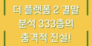 넷플릭스에서 공개된 영화 는 2019년의 첫 번째 영화의 후속작으로, 수직 감옥이라는 독특한 설정을 통해 인간 본성과 사회 시스템에 대한 심오한 질문을 다시 한 번 던지고 있습니다. 이번 포스팅에서는 영화의 결말을 …