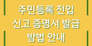 주민등록 전입 신고 증명서는 특정 주소로의 전입 사실을 증명하기 위한 중요한 서류입니다. 본 글에서는 주민등록 전입 신고 증명서의 발급 방법에 대해 단계별로 안내드리겠습니다. 이 글을 통해 해당 서류의 필요성과 발급 …
