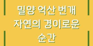 밀양 억산의 아름다움 밀양 억산(億山)은 경상남도 밀양시에 위치한 아름다운 산으로, 그 경치는 자연의 경이로움을 여실히 보여줍니다. 이곳은 수려한 자연경관과 더불어 역사와 전통이 어우러져 있어 많은 이들에게 사랑받고 있습니다. 억산은 해발 …