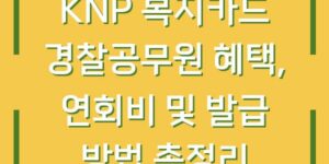 KNP 복지카드는 경찰공무원들이 누릴 수 있는 다양한 혜택을 제공하는 카드입니다. 본 글에서는 KNP 복지카드의 혜택, 연회비, 발급 방법 등을 상세히 정리하여 경찰공무원 여러분이 이 카드를 알아보고 활용하는 데 도움을 드리고자 …