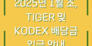 2025년 1월 초에 TIGER 및 KODEX ETF에서 배당금이 입금됩니다. 이번 글에서는 배당금의 구체적인 내용과 배당금 입금 일정, 해당 ETF의 특징 및 투자 유의사항을 자세하게 설명드리겠습니다. 배당금 입금 일정 TIGER와 KODEX의 …