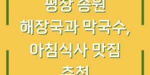 강원도 평창은 아름다운 자연경관과 함께 맛있는 음식으로 유명한 지역입니다. 특히 아침식사로 추천할 만한 곳이 바로 ‘송원 해장국과 막국수’입니다. 이곳은 해장국과 막국수를 주로 제공하는 맛집으로, 많은 여행객들에게 사랑받고 있습니다. 이번 글에서는 …