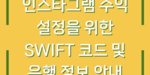 인스타그램을 통해 수익을 창출하고자 하시는 분들에게는 여러 가지 과정이 필요합니다. 특히, 해외 송금이 필요한 경우에는 은행 식별 코드인 스위프트 코드(SWIFT CODE)의 중요성이 더욱 커집니다. 이번 글에서는 인스타그램 수익 설정에 필요한 …