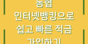 농협의 인터넷뱅킹 서비스를 통해 적금에 가입하는 것은 현대인의 스마트한 저축 방법 중 하나입니다. 특히, 바쁜 일상 속에서 금융 거래를 간편하게 처리할 수 있는 인터넷뱅킹은 많은 이들에게 큰 편리함을 제공합니다. 이번 …