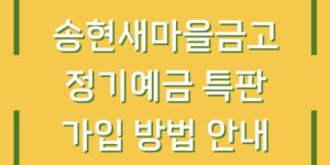 송현새마을금고는 최근 고금리 정기예금 상품인 “MG더뱅킹정기예금”을 출시하였습니다. 이 상품은 비대면으로 가입할 수 있는 특별한 상품으로, 높은 이자율과 다양한 우대 조건을 통해 많은 고객들의 관심을 받고 있습니다. 이번 포스팅에서는 송현새마을금고 정기예금 …