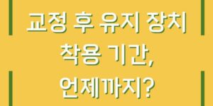 교정 치료가 끝난 후 치아를 안정시키기 위해 유지 장치를 착용하는 것은 매우 중요한 과정입니다. 교정 치료의 성공적인 결과를 오랫동안 유지하기 위해서는 적절한 유지 장치 착용 기간과 방법을 알아보는 것이 필요합니다. …